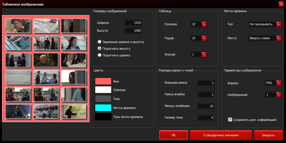 Табличное изображение представляет видео в виде таблицы, в каждой ячейке которой находится скриншот из исходного видео.