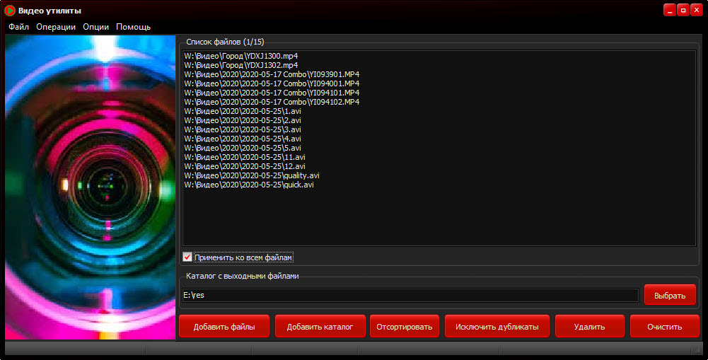 В случае, если Вы добавили несколько раз одни и те же файлы, дубликаты можно удалить с помощью команды Исключить дубликаты.